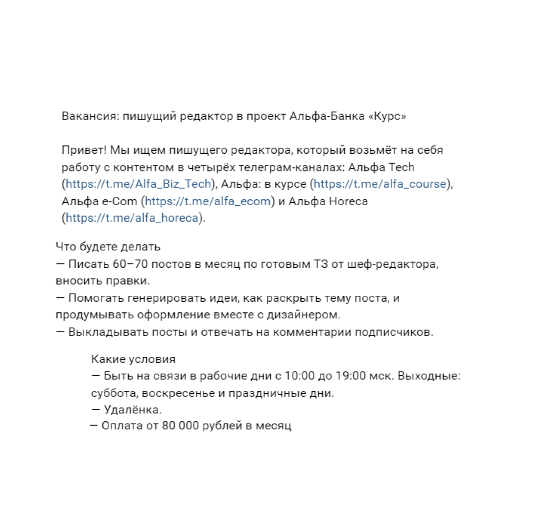 У нашей школы хорошая репутация, поэтому периодически мы получаем и прямые запросы на копирайтеров.