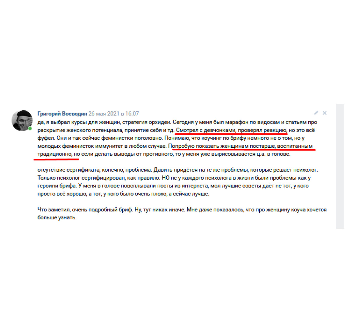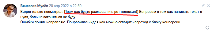 Такую обратку ты едва ли встретишь в других курсах по копирайтингу.