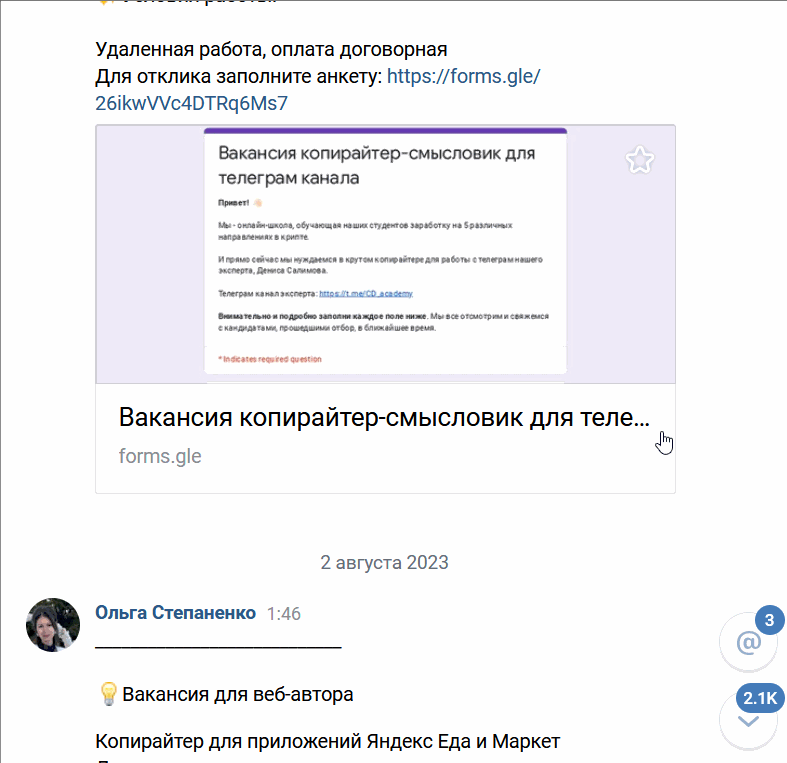 У нашей школы хорошая репутация, поэтому периодически мы получаем и прямые запросы на копирайтеров.